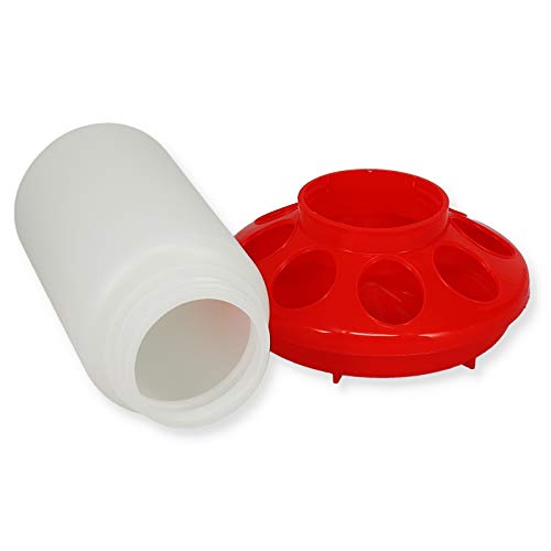Geflügeltränke: ca. 1,00 L Höhe 20 cm Durchmesser hinunter: 15 cm Automatische Wasserzufuhr