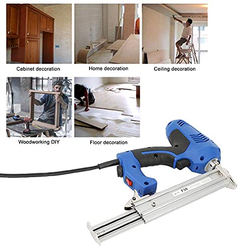 【Anwendung】 Die elektrische Nagelpistole wird zum Binden und Unterstützen in den Bereichen Heimdekoration, Beton, Holz, Eisenplatte usw. verwendet. Sie eignet sich zugunsten Schrankdekoration, Heimdekoration, Deckendekoration, Holzbearbeitung, Bodendekoration usw.