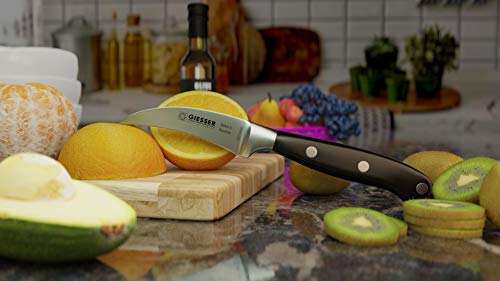 Giesser seit 1776 – Made in Germany – scharfes Tourniermesser geschmiedet 6 cm BestCut, hitzebeständig, schwarz, deutsches Schälmesser spülmaschinengeeignet, rostfrei