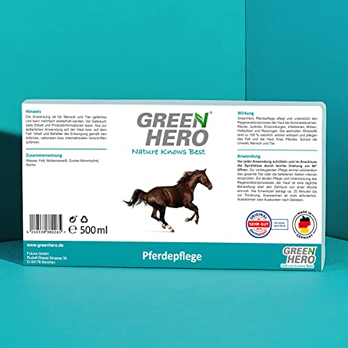 Lieferumfang: 1 x 500 ml Green Hero Pferdepflege / Natürliches Pflegespray für Tier und Umwelt / Sämtliche ohne Antibiotika und Kortison / Made in Germany