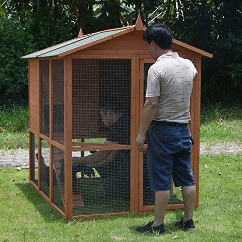 🐣 【STURDYMATERIAL】Das starke Tannenmaterial wird mit einem asphaltierten Schrägdach süchtig, das wasserdicht und schnell zur Sonne ist und Ihrem Haustier an regnerischen Tagen einen trockenen und komfortablen Platz bietet. Eine Rastertür oben ermöglicht es Ihnen, Ihr Haustier zu überprüfen, ohne es zu nerven.