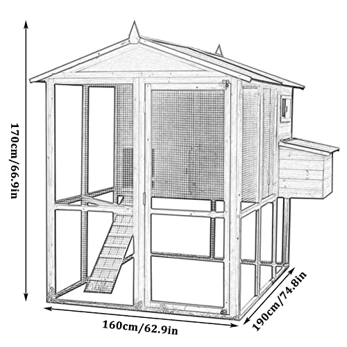 🐣 【GROSSER AKTIVITÄTSRAUM】Gesamtabmessungen:190x160x170cm/74.8×62.9×66.9in. Unsere Haustiertrage verfügt über Schiebetüren und Rampen für Ihre Hühner, Enten und Kaninchen, um den Stall, in dem sie gehalten werden, leicht zu erreichen. Über der Rampe befinden sich Holzkämme, die verhindern, dass das Geflügel nach hinten rutscht.