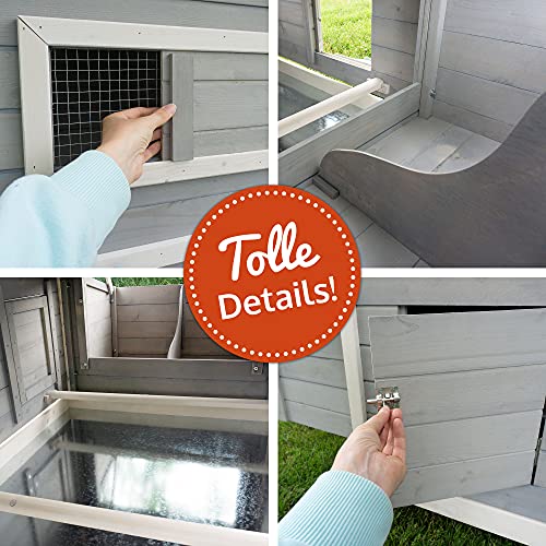 SCHNELLE REINIGUNG – Durch die herausziehbare Metall-Schublade lässt sich der geräumige Stall (Hühnerstall) einfach reinigen. Ein weiterer Vorteil der Säuberung ist der von oben zu öffnende Nistkasten