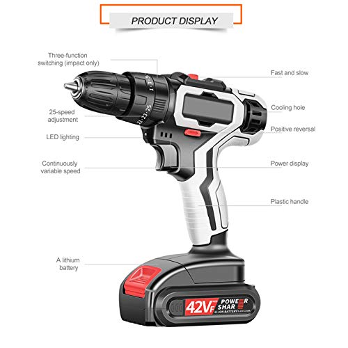 Das kabellose 42-VF-Kit für elektrische Bohrmaschinen und Batterie ist ein hervorragendes Elektrowerkzeug-Kit, das für verschiedene Haushalte qualifiziert ist. Enthält eine kabellose 42VF-Bohrmaschine, die ein höheres Schattierung an Kontrolle bietet, um ein Lungern der Schrauben und eine Überdrehzahl zu verhüten. Das Kit enthält eine Akku-Bohrmaschine, eine Ladebuchse, zwei Lithiumbatterien und eine Aufbewahrungsbox zum einfachen Stützen und Aufbewahren. Ist ein guter Gehilfe in Ihrem Leben.