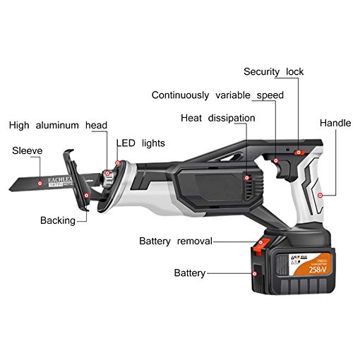 ▶ Packliste: Säbelsäge * 1, Metall, Holzsägeblatt * 2, Lithiumbatterie * 2, Batterieladegerät * 1, Verpackungsbox