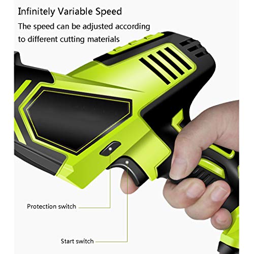 ★ Mehrzweck: Die EIN / AUS-Taste übernimmt das stufenlose Design eines Schalters mit variabler Geschwindigkeit. Für Ihre verschiedenen Schneidanforderungen stehen zwei separate Klingen für das Holz- und Metallschneiden zur Verfügung