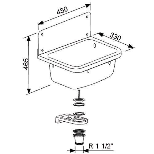Außenmaß Breite: 450mm; Außenmaß Tiefe: 330mm; Beckentiefe: 220mm;B x H x T: 45 x 46,5 x 33cm;