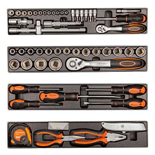 Auch ideal als Werksortiment für unterwegs. Ob beim Camping oder einfach als Sicherheit im Kofferraum Ihres PKW. Mit dieser Werkzeugkiste von hanSe tools haben Sie immer das richtige Werkzeug griffbereit