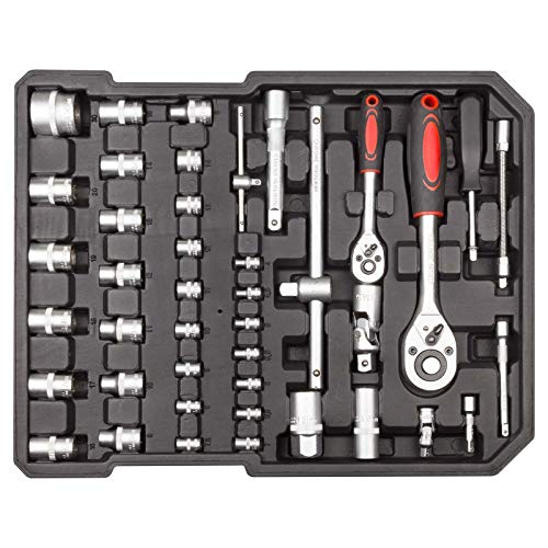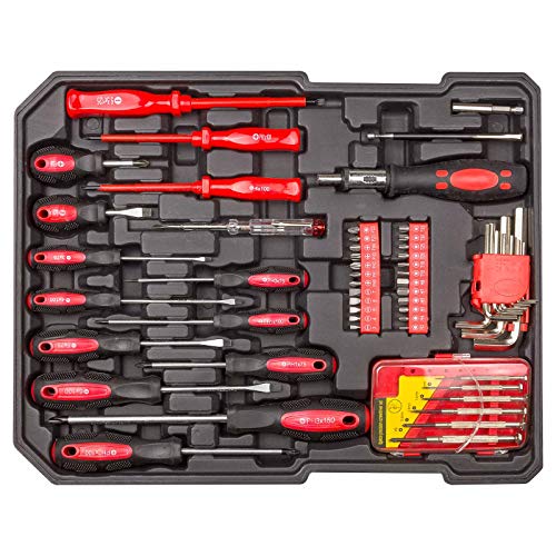 Das Set besteht jeder 4 Lagen. Jedes dieser Einlegefächer besticht durch ein ausgewogenes Sortiment an Werkzeugen.Lage 1: