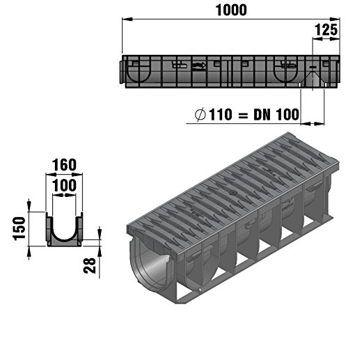 Hauraton Entw„sserungssystem RecyFix PRO 100 Klasse C250 befahrbar 25t Rinne Rinne 1000 mm
