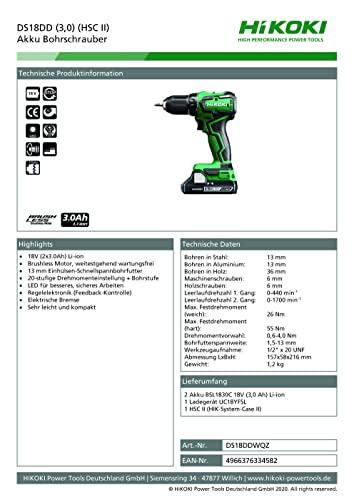 HIKOKI Stromspeicher Bohrschrauber DS18DD (3,0) 18V