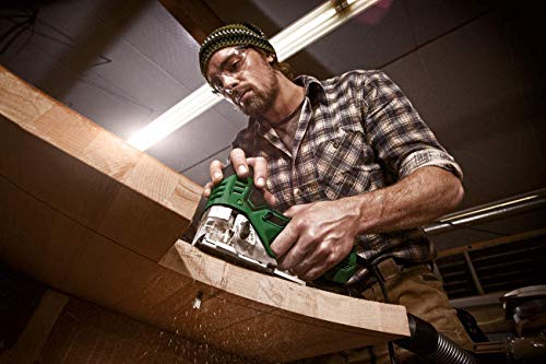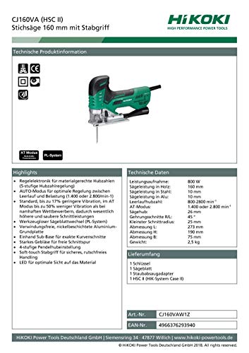 Stichsäge 800 W, leistungsstark und robust. Mit dem Drehrad können Sie die Geschwindigkeit regulieren und die AUTO-Abzug anstellen, die automatisch die Oszillationsgeschwindigkeit einsetzen, wenn die Aeroplan im Leerlauf oder unter der Last arbeitet und die Belichtung des Bedieners bei Vibrationen und Geräusche optimiert wird. Verfügt über ein innovatives Geometrie-Sägeblattsystem in 4 verschiedenen Positionen. Der Arbeitsbereich wird durch eine automatische LED-Lichtquelle beleuchtet und alle nasenlang sauber durch ein effektives Blassystem. Getriebegehäuse und Aluminiumfuß, allerdings mit der Teflon-Auflagefläche, die ein außergewöhnliches Schneidverhalten ermöglicht. Dieser ist in der Lust von 0° bis 45° verstellbar. Ausgestattet mit seitlichem Schalter und Drehzahlregler. Ein Anschluss ermöglicht das Anschließen eines externen Saugers und der Sägeblattwechsel ist dank eines erneuerten Sägeblatt-Hebesystems ohne Werkzeug, sehr robust mit Metallhebel. Der Griff ist die Gesamtheit „Soft-Grip“ Material für einen sicheren und bequemen Griff. Anwendungen: Im Rahmen für das Absicheln von verschiedenen Holzarten und Bohrarbeiten Absicheln von Hartstahlblech, Aluminium und Kupfer.