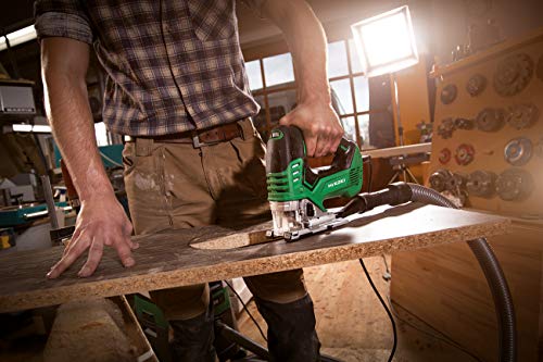 Stichsäge 800 W, leistungsstark und robust. Mit dem Drehrad können Sie die Geschwindigkeit regulieren und die AUTO-Tabelle erregen, die automatisch die Oszillationsgeschwindigkeit auf dieselbe Ebene stellen, wenn die Flieger im Leerlauf oder unter der Last arbeitet und die Belichtung des Bedieners bei Vibrationen und Geräusche optimiert wird. Verfügt über ein innovatives Geometrie-Sägeblattsystem in 4 verschiedenen Positionen. Der Arbeitsbereich wird durch eine automatische LED-Lichtquelle beleuchtet und jederzeit sauber durch ein effektives Blassystem. Getriebegehäuse und Aluminiumfuß, allerdings mit der Teflon-Auflagefläche, die ein außergewöhnliches Schneidverhalten ermöglicht. Dieser ist in der Affinität von 0° bis 45° verstellbar. Mit Drehzahlregler zur Geschwindigkeitswahl und Verriegelung für Dauerbetrieb. Ein Anschluss ermöglicht das Anschließen eines externen Saugers und der Sägeblattwechsel ist dank eines erneuerten Sägeblatt-Hebesystems ohne Werkzeug, sehr robust mit Metallhebel. Der Griff ist ganz „Soft-Grip“ Material für einen sicheren und bequemen Griff. Anwendungen: Brauchbar für das Sicheln von verschiedenen Holzarten und Bohrarbeiten Sicheln von Hartstahlblech, Aluminium und Kupfer.