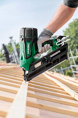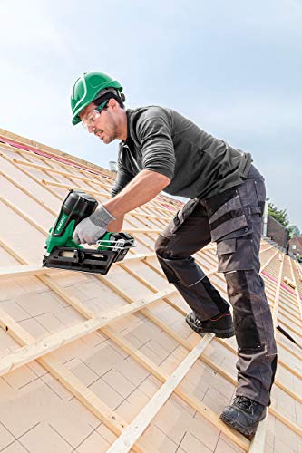 Revolutionäre Stromspeicher-Nagelmaschine von 90 mm bis 18 V, Ausführung handkehrum Gehäuse. Der Brushless-Anlage verfügt über ein innovatives Druckluftschuss-System, das eine effizientere und wirtschaftlichere akademische Arbeit ermöglicht, als andere Systeme (Gas/Reifen) und alias sicherere und gesünder für den Bediener in Bezug auf die Geistesabwesenheit von Treibgasen. Halbrundkopfnagel in 35° abgewinkelten Papierstreifen Keine Schussprobleme in Räumen bei niedrigen Temperaturen oder in der Höhe. Geringe Geräusch-, Vibrations- und Rückschlagwerte sowie die erforderliche Wartung sind minimal und hat eine überlegene Schusseffizienz (780 Nägel mit einer Akkuladung von 6 Ah). Mit Sicherheitsvorrichtung, die das Ausmachen durch wenige Nägel (6/7) verhindert. Die Schlund des Nagels ist werkzeuglos einstellbar, außerdem ist der Schussmodus elektronisch auswählbar, über ein multifunktionales Bedienfeld. Es verfügt über ein sehr modernes und ergonomisches Design, durch die integrierte Beleuchtung und den großzügigen Gürtelhaken. Anwendungen: Ideal für Schaffen im Baubereich, als Wandverkleidung, Dachabdeckung, unter Bodenbelägen. Konstruktion von Möbel- und Modulargehäusen, Zubereitung von Holz- und Bankkisten, Verpackungen in Produktionsanlagen.