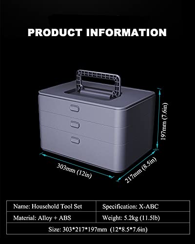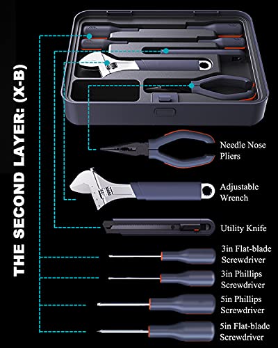 [Professionelles Haushaltswerkzeugset] Dieses kompakte Werkzeugset ist mehrschichtig gestaltet. Verschiedene Werkzeugkästen enthalten verschiedene Produkte. X4-ABC enthält elektrische Schraubendreher, Klauenhammer, Schraubenschlüssel, Schraubendreher, Zangen und viele andere Werkzeuge, mit denen Sie DIY-Handbuchideen erstellen können ohne Skrupel.