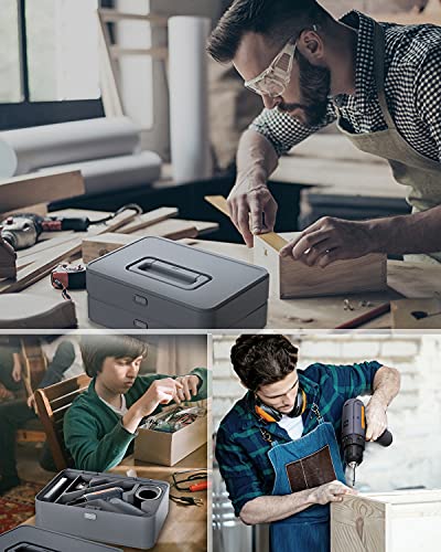 [Detailliertes Design] Unser manuelles Toolbox-Set bietet eine Vielfältigkeit von humanisierten Designs. Die Schnallenstruktur kann sicherstellen, dass die Werkzeuge beim Umkippen des Werkzeugkastens nicht herausfallen. Der tragbare Griff ist bequem zu versteifen und zu bewegen. Durch die geteilte Struktur werden die Werkzeuge aufgeräumter.