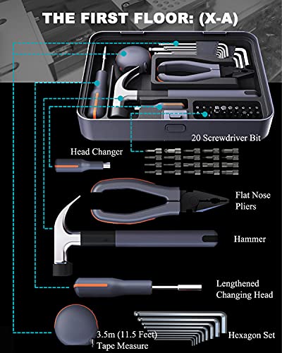 [Breite Anwendung] Das Handwerkzeugset ist klein und leicht und kann an verschiedenen Stellen im Haushalt hübsch platziert werden. Enthält 72 Reparaturwerkzeuge, die für elektrische Reparaturen, Möbeldekorationen, mechanische Reparaturen, Heimwerkerarbeiten usw. brauchbar sind.