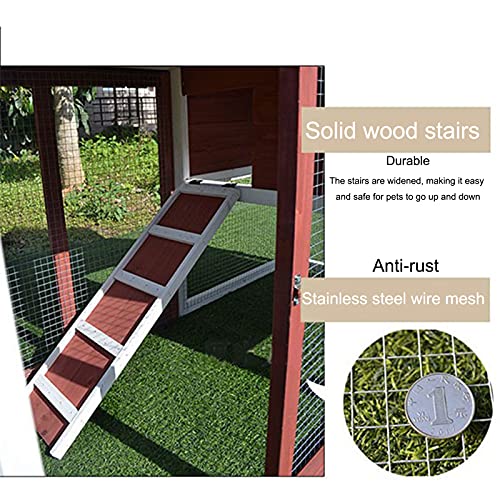 2. Geräumiger Raum: Doppelschichtiges Großraumdesign mit einem Laufkäfigdesign darunter, kleine Tiere können sich frei auf dem Boden bewegen. Das rutschfeste Rampendesign, das zum Haupthühnerhaus im zweiten Stock führt, erleichtert Ihren Hühnern das Ein- und Ausloggen. Alle Bereiche des Hühnerstalls sind bequem zu erreichen.