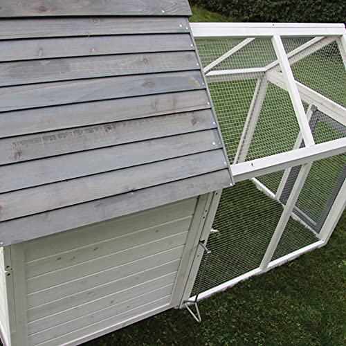 In dem schönen Hühnerhaus Ellen können Hühner, Küken, Wachteln, Kaninchen und alias Meerschweinchen gehalten werden. Der Vintage-Look verleiht dem Haus zusätzlich einen besonderen Charme. Es ist angebracht, die Hühner tagsüber in einem kleinen Gehege oder frei laufen zu lassen. Der Hühnerstall ist die Gesamtheit Nadelholz, ungiftig und gegen Feuchtigkeit imprägniert. Der Metalldraht ist verzinkt und bietet guten Abschirmung gegen Räuber wie z.B. Marder und Fuchs. Mit dem Schieber die Gesamtheit Metall können Sie einfach die Tür vom Haupthaus zum Freilaufgehege von außen suffigieren und öffnen und darüber befindet sich ein Schieber für die Belüftung des Stalles. Zwei Hühnerstangen im Haus bieten Hühnern einen artgerechten Schlafplatz. Der stabile Schubladenboden ist die Gesamtheit Metall und somit super leicht zu reinigen. Das Dach und der Nistkasten sind mit mit imprägniertem Nadelholz gedeckt. Der Deckel vom Nistkasten lässt sich einfach öffnen. So können Sie leicht die Eier entnehmen. Der Vintage Look verleiht dem Haus zusätzlich einen besonderen Charme. Die rechtlichen Bestimmungen des Ökolandbaus protokollieren für Legehennen hinsichtlich der Stallfläche folgendes vor: Es dürfen maximal 6 Tiere pro Quadratmeter Stallfläche gehalten werden. Wieviele Hühner für meinen Haushalt: Durchschnittlich können Legehühner jährlich zwischen 180 und 220 Eier legen. Bei 3 Legehühnern rechnen wir 3 x durchschnittlich 200 Eier = 600 Eier pro Jahr und somit ca. 11 Eier pro Woche. Es wird ausgeprägt, dass 3 Legehühner i.d.R. für eine Familie ausreichend sind. Es gibt Rassen, die legen sogar noch mehr Eier. Der optimale Platz zum Aufstellen: Im Sommer sollte der Kleintierstall schattig stehen um die Tiere vor Überhitzung zu schützen. Am besten stellen Sie den Kleintierstall wind- und regengeschützt auf. So kann der Stall auf lange Zeit ein Heim für Ihre Lieblinge sein. Abmessungen Produkt: Gesamt, mit Dachüberstand = 1665 (L) x 1210 (T) x 1120 mm (H) Haus ohne Dach = 670 x 750 mm Nistkasten ohne Dach = 620(B) x 340 (T) x