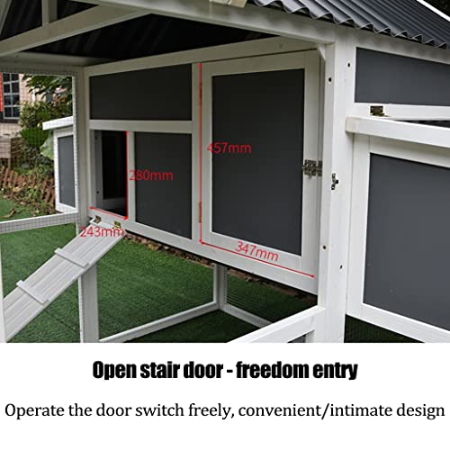🐰【Erhöhtes Design】Der erhöhte Rost hält Ihr Geflügel zäh, trocken und warm, besonders an regnerischen und kalten Tagen. Es ist auch bei großer Hitze praktisch, da sie die Sonne abschirmen und leicht in ihre Nistkästen gelangen können, ohne grellem Licht ausgesetzt zu sein.