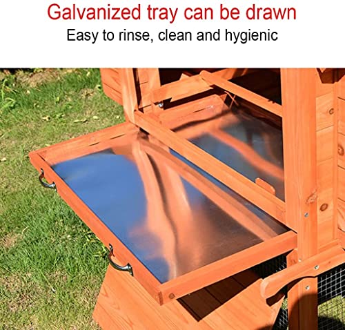 Humanisiertes Design: Am Boden des Haustierkäfigs befindet sich ein bewegliches unteres Schieber, das bequem und praktisch ist. Das Asphaltdach mit festem Holzkanten ist komfortabel und schön, selbst in regnerischen Tagen können Sie es bekannt als verwenden draußen; Es gibt eine Hühnerpol, Sie können es Stroh verbreiten, damit die Hühner ruhen, ein Nickerchen und Spielen, Ruhe und Trost.