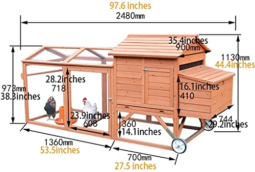 Geräumiger Hühnermaterial: Die Größe des Hühnerwollungsstalls beträgt 245x90x113 cm; Es ist passend, in Ihrem Innenhof, in der Terrasse, in Ihrem Garten zu platzieren, und kann bequem 3-7 brauchbar der Größe und der Mannigfaltigkeit Hühnchen, bequem und warm, bequem erhöht werden.