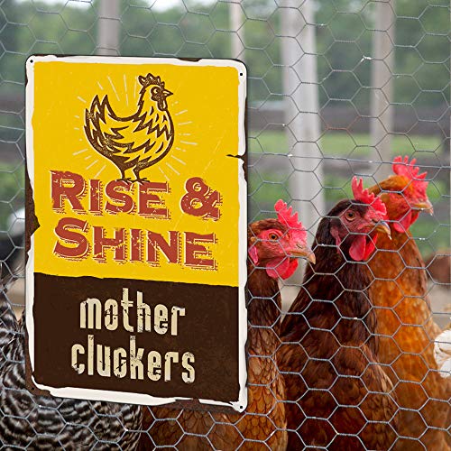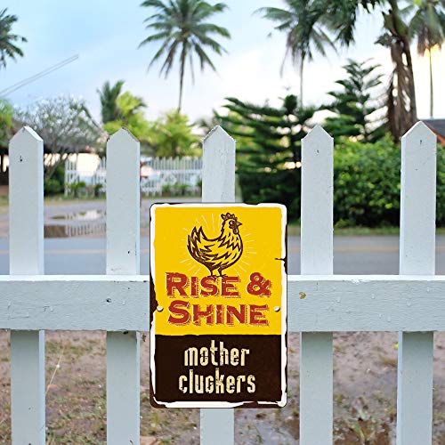 Rise and Shine Mother Cluckers, Hahnschild, Heimdekoration für das Bauernhaus-Dekor oder Haus, das einige Wanddekorationen hinzukommen muss, um die leeren Wände seines Büros, Garagen, Männerhöhle, Herren-Bad, Flieger, Spielzimmer, Poolzimmer, Keller, Bar, Schuppen entfernen, Bastelraum zu abfüllen. Bringen Sie etwas Humor mit unseren Hühnerstallschildern im Freien. Lustiges Hühner-Schild.