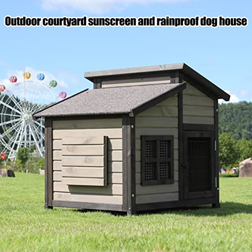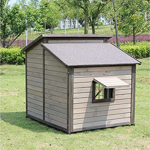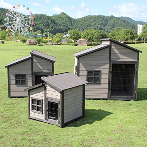 🐶 【Stabile Konstruktion】Aus hochwertigem Holz, Linoleumdach, wasserdicht, wärmeisolierend, staubdicht und mit umweltfreundlichem, wasserdichtem Lack beschichtet. Holzscheite sind fulminant und natürlich für Ihr geliebtes Haustier. Durch die Verwendung von umweltfreundlicher Farbe ist der Käfig wasserdicht, Sonnenschutz, UV-beständig, und hat eine lange Lebensdauer, bietet ein warmes Zuhause für Haustiere.