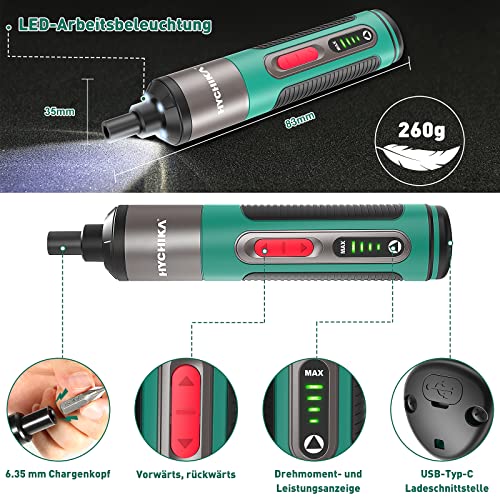 HYCHIKA BETTER TOOLS FOR BETTER LIFE, Cordless Screwdriver 3.6 V, Screwdriver Set 2.0 Ah Battery, 4 Speed Torque…