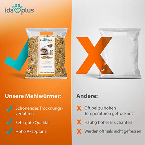 💙 OHNE ZUSATZSTOFFE – Ida Plus Edel Mehlwürmer werden schonend getrocknet und bruchfrei abgepackt – dabei verzichten wir wohlüberlegt auf Konservierungs- und Zusatzstoffe