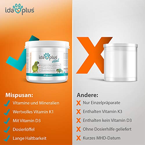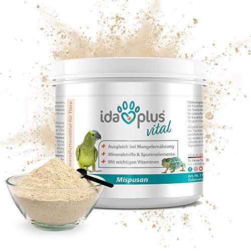 Ida Plus – Mispusan Pulver 200 g – Mineralfuttermittel mit Vitamin D3, Calcium & Spurenelementen für Amphibien, Reptilien & Vögel – Wellensittich, Kanarienvogel, Papageien & Bartagame – Mineralstoffe