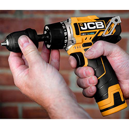 Kompakt und gleichwohl kraftvoll präsentiert sich der neue JCB 12V Speicherzelle-Bohrschrauber mit 2-Gang-Getriebe für effizientes Schrauben und Bohren in verschiedenen Materialien.