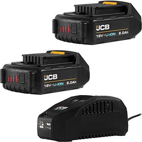 LIEFERUMFANG: JCB wiederaufladbare Batterie-Schlagbohrschrauber 18BLCD, 2x 18V wiederaufladbare Batterie 2,0 Ah, Ladegerät