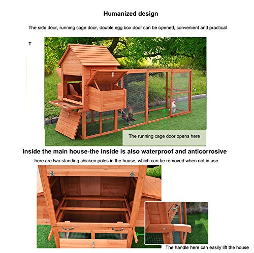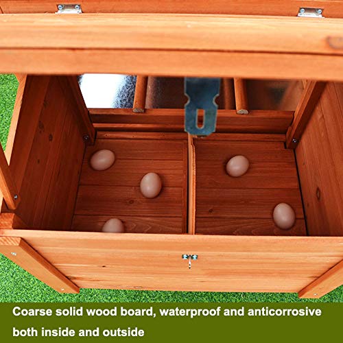 GERÄUMIGER RAUM & BENUTZERFREUNDLICHES DESIGN – Der Hühnerstall wird mit Nistkasten, Ruhekasten und Rampe geliefert. Ihr Geflügel kann seine Eier in den Nistkasten legen. Es gibt eine Schiebetür und eine Rampe, durch die Geflügel leicht in den erhöhten Wohnbereich gelangen kann. Über der Rampe befinden sich Holzkämme, die Ihr Geflügel vor dem Zurückrutschen schützen. Mit dem Design der Gittertür können Sie Ihre Haustiere beobachten, ohne sie zu unterbrechen.