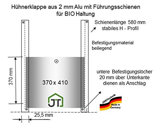 SICHER: Die Hühnerklappe in der Größe 410 x 370 mm besteht jeder 2 mm starken Leichtmetall und eignet sich zum sicheren Zu Ende führen von Hühnerställen, Geflügelställen und anderen Stallungen