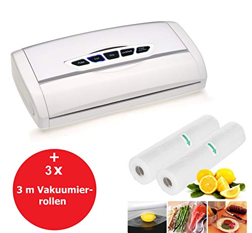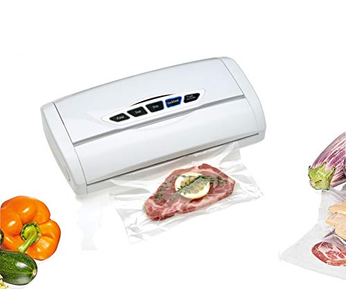 LÄNGER FRISCH: Einfache Bedienung und ein fester Verschluß Acht geben ein optimales Vakuuum und eine sichere Schweißnaht. Dieser vollautomatische Vakuumierer / Vakuumiersystem ist ideal für die Lagerung von Fleisch, Fisch, Gemüse und Obst. vakuumiert bleiben Ihre Lebensmittel bis zu 8x länger frisch und das ganz natürlich ohne Konservierungsstoffe