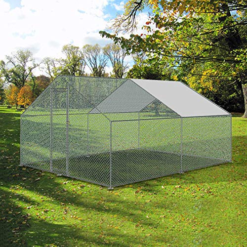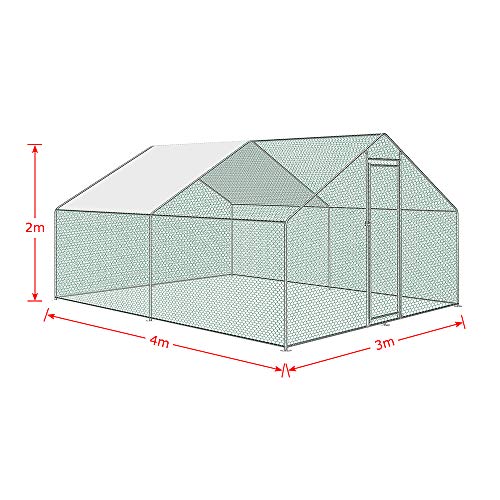 Mit Sechskant-HDPE-Netz und Stabile Freilaufgehege aus Wetterfestem, verzinktem Metall mit Tür bietet Kleintiere wie Hühner, Enten und Kaninchen reich Freiraum,Geschützt vor Greifvögeln und Katzen, Einfache Montage.