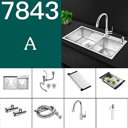 Paket d beinhaltet: Waschbecken, Ablaufsystem, Rollladen, Edelstahlablaufkorb, Winkelventil, 60 cm Einlassrohr, 304 Warm- und Kaltwasserhahn, Seifenspender
