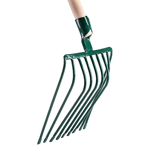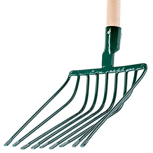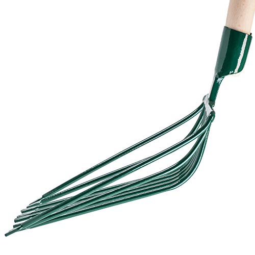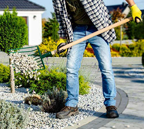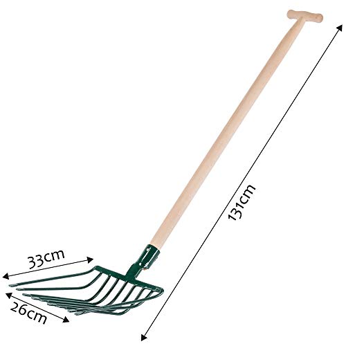 😃 DAS GUT ANGEPASSTE ARBEITSTEIL ERLEICHTERT DIE ARBEIT UND MACHT SIE KOMFORTABEL. Der Buckel in der Mitte verhindert das Abrutschen der angesammelten Steine beim Aufsaugen von neuen. Das Arbeitsteil ist 330 mm lang und die Gabel ist 265 mm breit. Dank der Metallfassung büßt das Werkzeug sogar nach einer langen Anwendung nichts von seinen Eigenschaften ein.