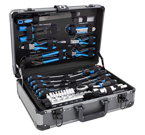 Inklusive stabilem Koffer, in dem das Werkzeug kompakt, übersichtlich unter anderem restlos zur Hand verstaut werden kann