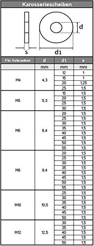 Karosseriescheiben sind aka unter dem Namen Kotflügelscheiben bekannt. Sie werden hauptsächlich bei Schraubverbindungen im Fahrzeugbau verwendet. Die Kotflügelscheibe wird unter dem Schraubenkopf bzw. der Mutter platziert und verteilt so die einwirkende Kraft auf eine größere Fläche. Durch diese Kraftverteilung werden Schäden vermieden und das Material nicht eingedrückt. Wegen dem großen Außendurchmesser eignen sich Karosseriescheiben hervorragend, um Gummiteile und Zugbänder leistungsfähig zu katalysieren. Zusätzlich können sie als Blechverstärkung an Verschraubungsstellen, wie an Schutzblechen oder Kotflügeln rödeln.