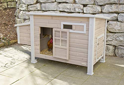 Kerbl Hühnerstall Emma (MaÃe 146x74x85 cm, mit Schiebefenster für Luftzirkulation, Stall mit 2 Legenester + Sitzstangen, aus Holz) 81702