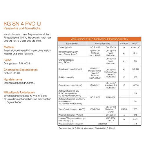 Die KG-System PVC Rohre sind bekannt als qua Vollwandrohr SN 4 und SN 8 gemäß GRIS Gütezeichen Nr. 175/ Ö-Norm EN 1401-1 erhältlich.