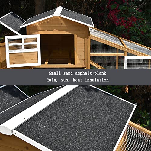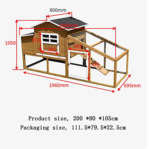 Langlebig und stilvoll: Die Größe des Hühnerhauses beträgt 200 x 80 x 105 cm. Dieser attraktive Outdoor-Kaninchenkäfig, der perfekt minimalistisches Aussehen und Stabilität integriert, fügt sich perfekt in Ihren schönen Garten ein. Ungiftiger Lack und dichter Metallzaun, um Langlebigkeit und Haltbarkeit für den Außenbereich zu gewährleisten. Das Asphaltdach ist wasserdicht und UV-beständig und bietet Kaninchen einen Unterschlupf, um pralle Sonne oder starken Regen zu vorbeugen.