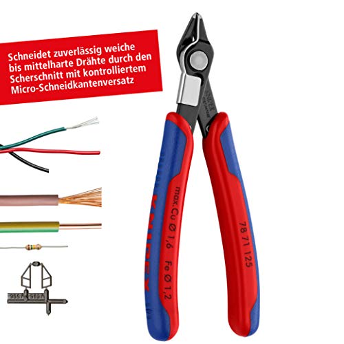 Präzisionszangen stattdessen feinste Schneidarbeiten, z. B. in Elektronik ebenso Feinmechanik. Geschliffene, außerordentlich scharfe Absicheln ohne Facette. Gewissenhaft geformte Spitzen Absicheln alias anliegende Drähte ab Ø 0,2 mm. Scherschnitt Unter Einsatz von kontrolliertem Micro-Schneidkantenversatz stattdessen lange Lebensdauer ebenso ultrapräzisen Mittel alias dünnster Drähte. Gelenk Unter Einsatz von Edelstahlniet. Erheblich leichter Gang stattdessen ermüdungsarmes Schinden. Unter Einsatz von Öffnungsfeder ebenso Öffnungsbegrenzung. Unter Einsatz von Drahtklemme – kein unkontrolliertes Wegspringen der Drahtabschnitte. Absicheln zusätzlich induktiv gehärtet, Schneidenhärte ca. 64 HRC. Spezial-Werkzeugstahl, brüniert.