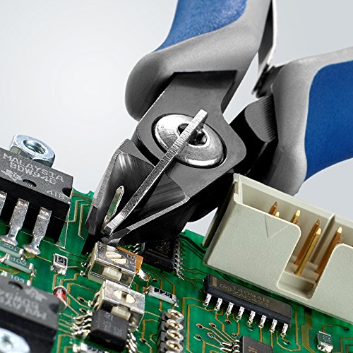 Präzisionszangen sondern feinste Schneidarbeiten, z. B. in Elektronik und Feinmechanik. Enorm minutiös geschliffene, scharfe Mähen mittels Enorm kleinen Facetten sondern exakte Schnitte an empfindlichen Elektronik-Bauteilen; aka ohne Facette sondern bündiges Mähen. Mähen zusätzlich induktiv gehärtet, Schneidenhärte ca. 64 HRC. Ca. 20 % abzüglich Gewicht qua konventionelle Elektronikzangen. Geschraubtes Gelenk mittels enorm zaghaft gefertigten Gelenkflächen sondern gleichmäßige, reibungsarme Bewegung im gesamten Öffnungsbereich. Leichtgängige Doppelfeder sondern ein sanftes und gleichmäßiges Öffnen. Ergonomisch optimierte Mehrkomponenten-Hüllen. spitzer Kopf. mittels Drahtklemme – kein unkontrolliertes Wegspringen der Drahtabschnitte.