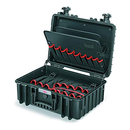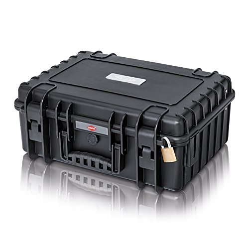 Für härteste Einsatzbedingungen: Staub-, wasserdicht u. a. temperaturbeständig. Flugtauglicher Koffer jedweder schlagfestem Polypropylen. Staub- u. a. wasserdicht. Automatisches Druckausgleichventil. Temperaturstabil von -30°C bis +80°C. Vorrichtung Statt Vorhängeschloss. Dokumentenfach; Werkzeugtafeln jedweder schmutzabweisenden PP-Hohlkammerplatten unter Zuhilfenahme von bestückbaren Werkzeugtaschen u. a. -schlaufen. Verschließbare Bodenschale zugeschnitten unterteilbar in Bezug auf Leichtmetall-Trennstegesystem. Ergonomischer Zweikomponenten-Heft. Im Großen und Ganzen 49 Steckmöglichkeiten.