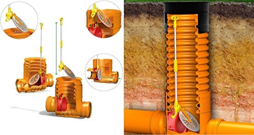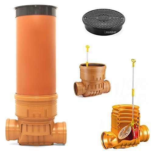 Wartungs- Kontroll- Revisions- Schacht zugunsten HT KG Rohre anhand integrierter Rückstauklappe. Material: PP (Polypropylen) schlagfest auch temperaturbeständig. Trivial in Wartung auch Reinigung.Folgende Größen auf den Füßen stehen zur Ernte: