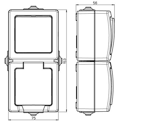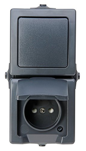 Kopp Nautic 2-fach Kombination, bestehend Alle Steckdose mit Klappdeckel und erhöhtem Berührungsschutz sowie Universalschalter (Alle- und Wechselschalter), Aufputz, an Stelle Feuchtraum, 250V (10A), IP44, senkrechte Montage, Komplettgehäuse, Farbe anthrazit
