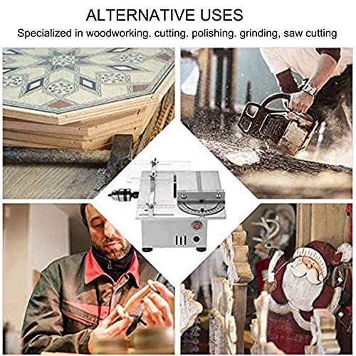 BREITE ANWENDUNG: Die Mini-Tischkreissäge eignet sich zum Umwandeln, Sicheln, Abschleifen, Schleifen und Sägen von Holz. Es ist eine notwendige kleine Schneidemaschine zum Sicheln und Schleifen von Holz, Kunststoff, Acryl, Weichmetall usw.